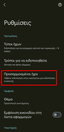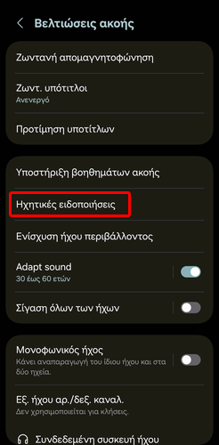 Έπειτα, πατάμε “Ηχητικές ειδοποιήσεις”.