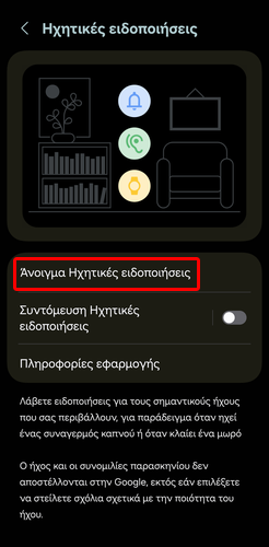 Μετά, πατάμε το “Άνοιγμα Ηχητικές ειδοποιήσεις”.