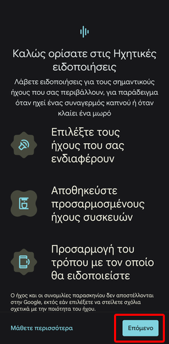 Χάρη στη λειτουργία προσβασιμότητας “Ειδοποιήσεις ήχων” του Android, το κινητό μας μετατρέπεται σε ένα δεύτερο ζευγάρι αυτιά. Μπορεί να ανιχνεύσει ήχους όπως το χτύπημα της πόρτας, το κλάμα ενός μωρού, ή έναν συναγερμό πυρκαγιάς, και να μας ειδοποιήσει άμεσα.