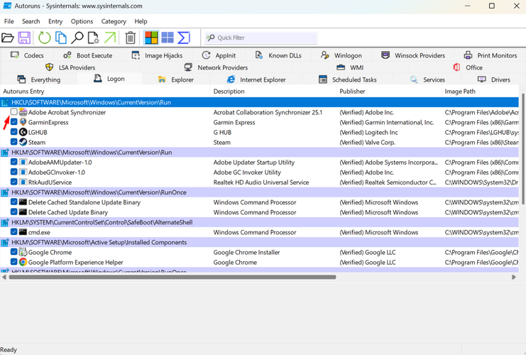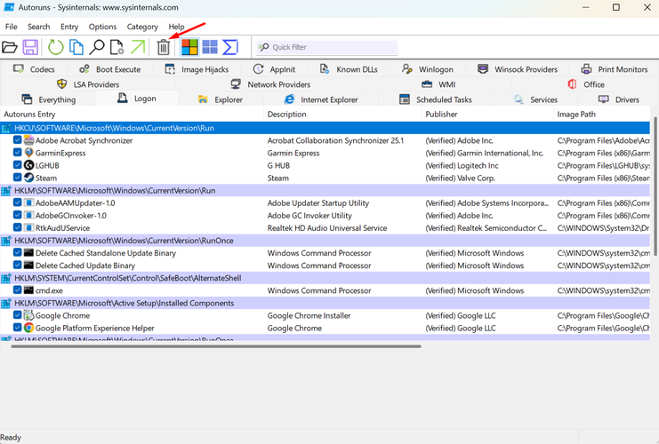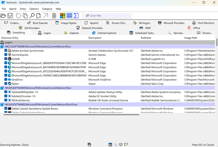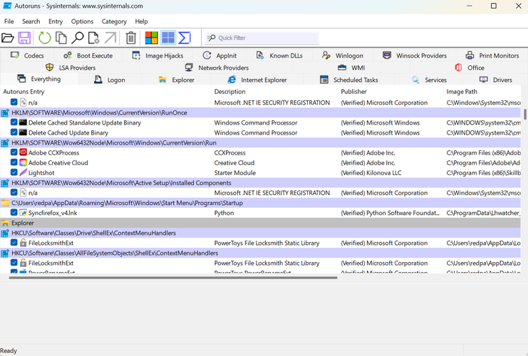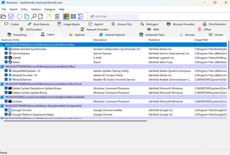 Το εργαλείο Autoruns της Microsoft μας δίνει την πλήρη εικόνα, εμφανίζοντας κάθε στοιχείο που εκκινείται κατά το boot, από προγράμματα και υπηρεσίες, μέχρι οδηγούς και προγραμματισμένες εργασίες.