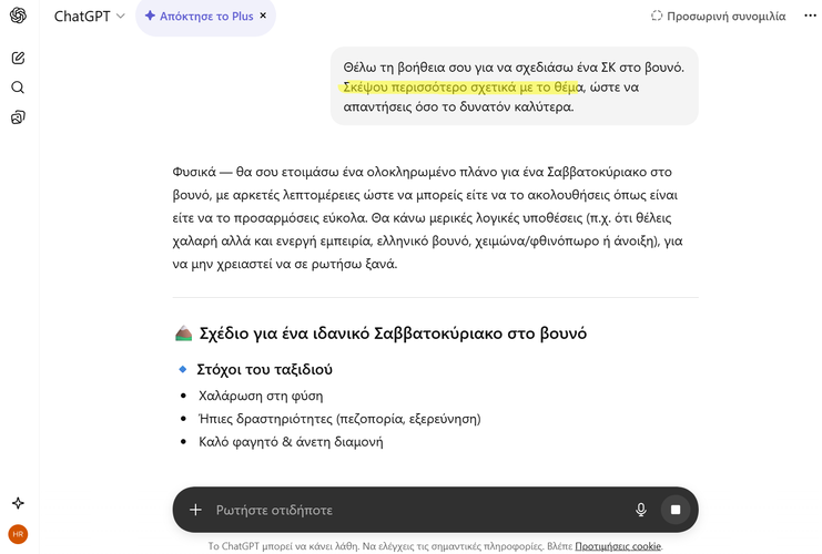 Αρχικά, προσθέτουμε τη φράση “think deep about this” ή “σκέψου περισσότερο γι' αυτό” σε οποιαδήποτε προτροπή μας για να αναγκάσουμε το ChatGPT να χρησιμοποιήσει τα πιο εξελιγμένα μοντέλα λογικής.