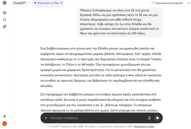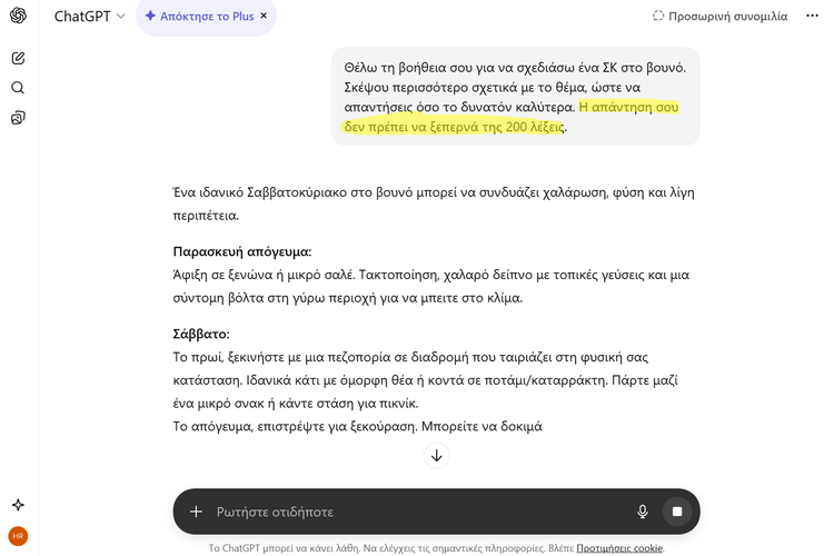 Έπειτα, καθορίζουμε ακριβώς το μέγεθος της απάντησης που θέλουμε, γράφοντας για παράδειγμα “κράτα την απάντηση κάτω από 200 λέξεις” ή “συνόψισε σε 3 προτάσεις”. Έτσι, αναγκάζουμε το AI chatbot να μην είναι τόσο πρόθυμο και να περιορίζει την απάντηση του στις απαραίτητες πληροφορίες.