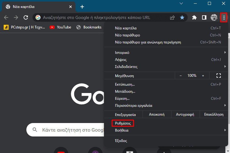 Για να απενεργοποιήσουμε τον εντοπισμό χρήσης, κάνουμε κλικ στις τρεις τελείες και μπαίνουμε στις “Ρυθμίσεις”.