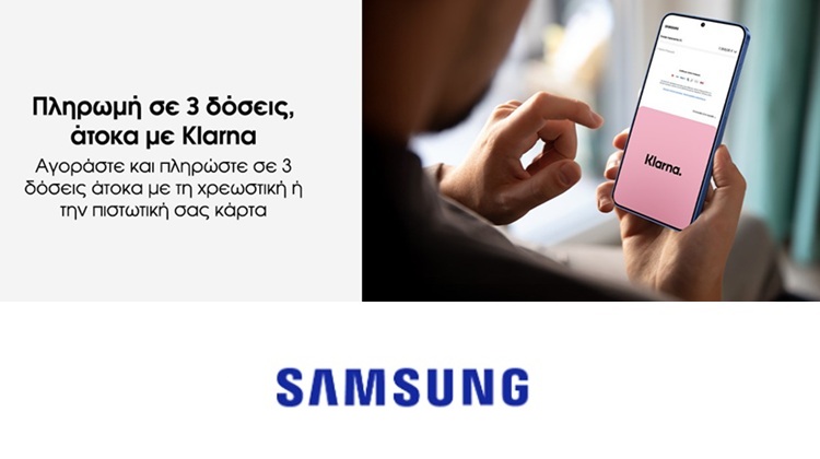 Η Samsung Electronics Hellas εμπλουτίζει την αγοραστική εμπειρία διευρύνοντας τις επιλογές πληρωμής στο Samsung eStore. Οι ενδιαφερόμενοι μπορούν πλέον να ολοκληρώσουν τις αγορές τους, επιλέγοντας την εξόφληση σε 3 άτοκες δόσεις με χρεωστική ή πιστωτική κάρτα, μέσω Klarna. Με την συνεργασία με την Klarna, η Samsung Electronics Hellas συνεχίζει να επενδύει σε λύσεις που στόχο έχουν την ασφαλή, γρήγορη και άνετη εμπειρία αγορών.