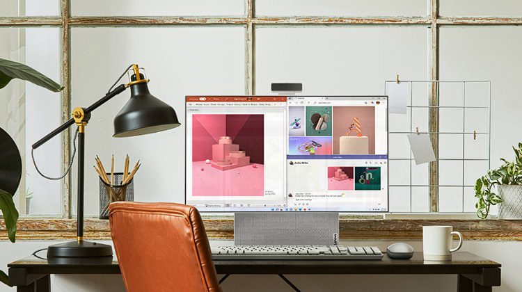 Ένα από τα πλέον ενδιαφέροντα χαρακτηριστικά του Yoga AIO 7 είναι ότι διευκολύνει τη συνεργασία. Οι χρήστες μπορούν πλέον να προβάλουν ασύρματα τις οθόνες των κινητών τους8 πάνω στην οθόνη του υπολογιστή, ώστε να παρακολουθούν βίντεο, να βλέπουν φωτογραφίες ή να σερφάρουν στα διάφορα κοινωνικά δίκτυα, χάρη στην τεράστια οθόνη των 27 ιντσών, η οποία προσφέρει δυνατότητα οριζόντιας και κάθετης περιστροφής. Κι ενώ μπορεί κανείς να εργάζεται ή να βλέπει βίντεο σε έναν φορητό υπολογιστή9, παράλληλα έχει τη δυνατότητα να ενισχύει τον ήχο και την επιφάνεια θέασης, συνδέοντας τη συσκευή του στην πλήρως λειτουργική Type C θύρα που διαθέτει ο Yoga AIO 7, έτσι ώστε ο χρήσης να είναι σε θέση να ελέγχει και τις δύο συσκευές από πληκτρολόγιο και ποντίκι, ενώ παράλληλα η φορητή συσκευή θα φορτίζεται.