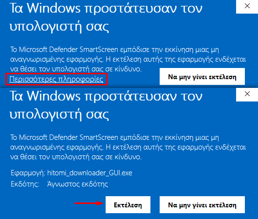 Έπειτα, τρέχουμε την εφαρμογή. Αν δούμε το πλαίσιο του Microsoft Defender SmartScreen, κάνουμε κλικ στον σύνδεσμο “Περισσότερες πληροφορίες” και πατάμε “Εκτέλεση”.
