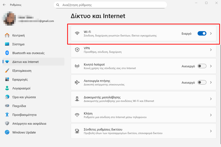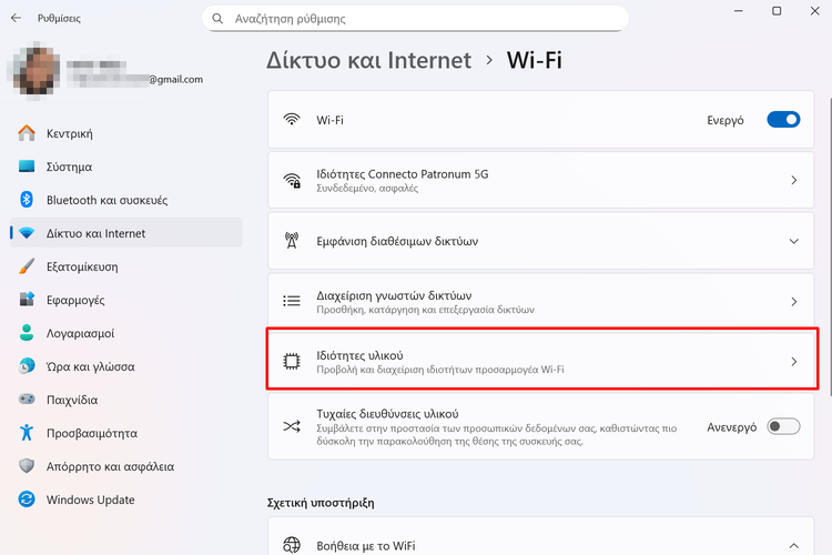 Στη συνέχεια, επιλέγουμε τη σύνδεση Wi-Fi ή Ethernet που χρησιμοποιούμε.
