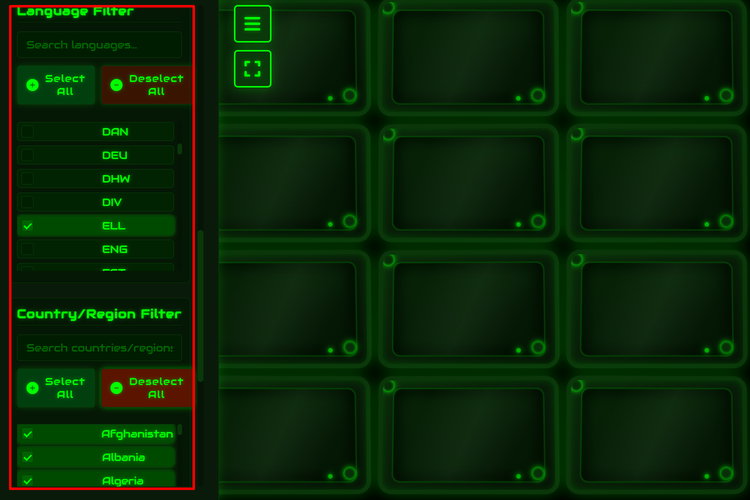 Μετά, μπορούμε να φιλτράρουμε τα κανάλια ανά χώρα, περιοχή, ή γλώσσα, από τις διαθέσιμες επιλογές στο αριστερό μέρος της σελίδας.