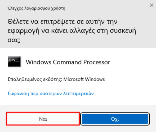 Στη συνέχεια, στο παράθυρο που θα εμφανιστεί, κάνουμε κλικ στο “Ναι”.