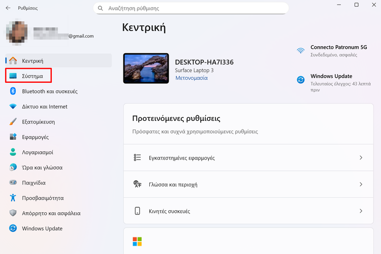 Αρχικά, ανοίγουμε τις ρυθμίσεις και από το μενού αριστερά επιλέγουμε “Σύστημα”.