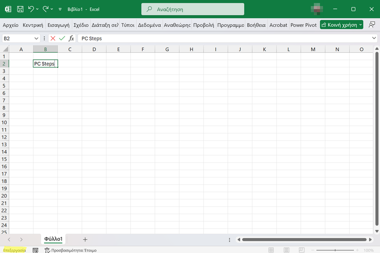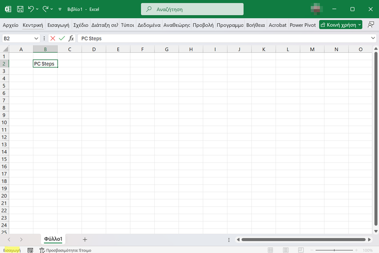 Όπως αναφέραμε, η κατάσταση “Έτοιμο” είναι η προεπιλεγμένη. Σε αυτήν, μπορούμε να πλοηγηθούμε στα κελιά χρησιμοποιώντας τα πλήκτρα με τα βέλη.
