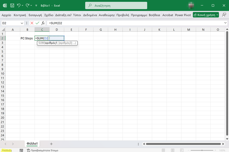 Τέλος, κατά τη δημιουργία ενός τύπου, όταν χρησιμοποιούμε τα βέλη για να επιλέξουμε ένα κελί, ενεργοποιείται η κατάσταση “Υπόδειξη”, επιτρέποντάς μας να προσθέσουμε εύκολα αναφορές κελιών στον τύπο μας.