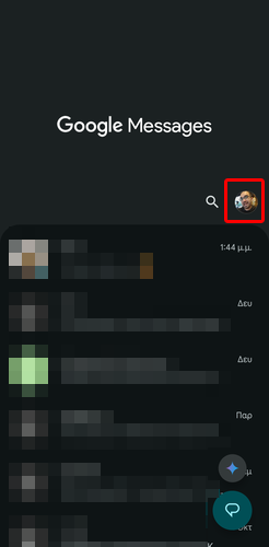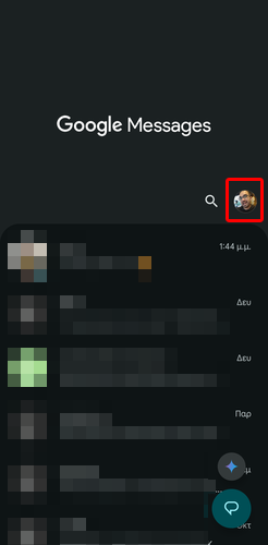 Επιπλέον, η διαδικασία γίνεται τοπικά στη συσκευή μας, προστατεύοντας την ιδιωτικότητά μας. Αρχικά, ανοίγουμε την εφαρμογή Google Messages και πατάμε την εικόνα προφίλ.