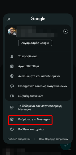 Μετά, πατάμε “Ρυθμίσεις για Messages”.