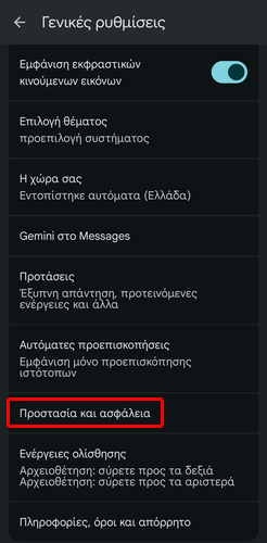 Στη συνέχεια, επιλέγουμε “Προστασία και ασφάλεια”.