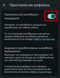 Τέλος, ενεργοποιούμε τον διακόπτη δίπλα στο “Προστασία από ανεπιθύμητο περιεχόμενο”.