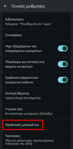 Έπειτα, επιλέγουμε “Οργάνωση μηνυμάτων”.