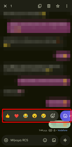 Αρχικά, πατάμε παρατεταμένα το μήνυμα στο οποίο θέλουμε να αντιδράσουμε, ώστε να εμφανίσουμε το μενού των αντιδράσεων.