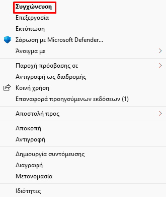 Στη συνέχεια, κάνουμε δεξί κλικ στο αρχείο που δημιουργήσαμε και πατάμε “Συγχώνευση”.