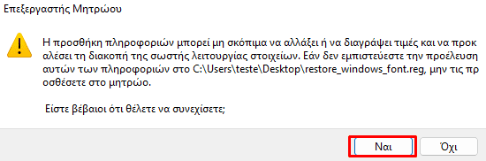Στο προειδοποιητικό παράθυρο που θα εμφανιστεί κάνουμε κλικ στο “Ναι”.