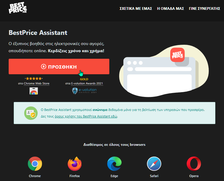BestPrice Assistant: Το Πρόσθετο Που Μας Βρίσκει Τη Φθηνότερη ΤιμήΟι αγορές online είναι αναπόσπαστο κομμάτι της καθημερινότητάς μας. Δεν έχει σημασία αν αγοράζουμε προϊόντα τεχνολογίας, ρούχα, έπιπλα, ή οτιδήποτε άλλο. Αν θέλουμε να πετύχουμε την καλύτερη δυνατή τιμή, επιβάλλεται να κάνουμε μία έρευνα αγοράς πριν προχωρήσουμε. Σε αυτόν τον οδηγό θα δούμε πώς να το πετύχουμε αυτόματα, με τη χρήση ενός και μόνο προσθέτου στον browser μας: του BestPrice Assistant.