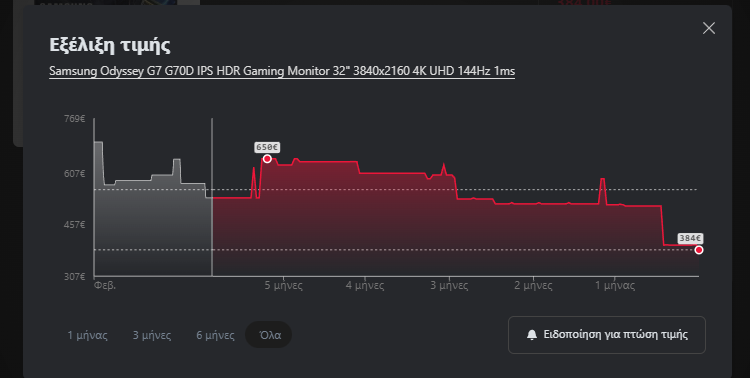 Μπορεί βέβαια, να θέλουμε να ψωνίσουμε μία συγκεκριμένη οθόνη. Ακριβώς το ίδιο σύστημα ειδοποιήσεων λειτουργεί και για μεμονωμένα προϊόντα.