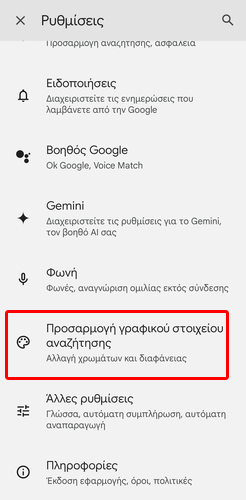Μετά, πατάμε “Προσαρμογή γραφικού στοιχείου αναζήτησης”.