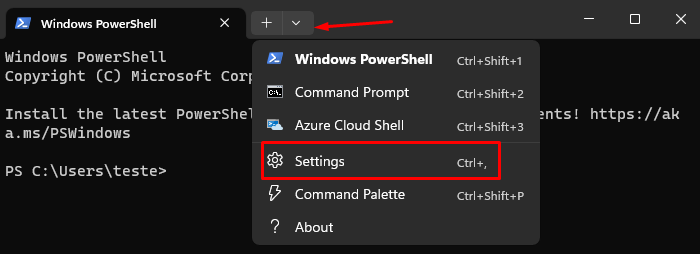 Αρχικά, τρέχουμε το τερματικό, κάνουμε κλικ στο βελάκι στη γραμμή καρτελών, και επιλέγουμε το “Settings”.