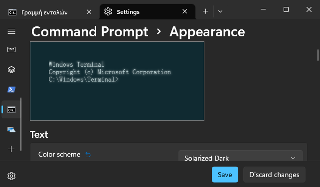 Αλλαγή εμφάνισης της Γραμμής εντολών και του τερματικού στα Windows 11