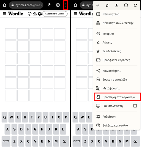 Ο Chrome θα δημιουργήσει στην αρχική οθόνη του κινητού μία συντόμευση για το Wordle. Από εδώ και στο εξής, όταν θέλουμε να παίξουμε το παιχνίδι λέξεων, θα πατάμε αυτή τη συντόμευση και θα ανοίγουμε την PWA του παιχνιδιού.