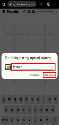 Στο πλαίσιο που θα ανοίξει, πληκτρολογούμε το όνομα “Wordle” και πατάμε “Προσθήκη”.