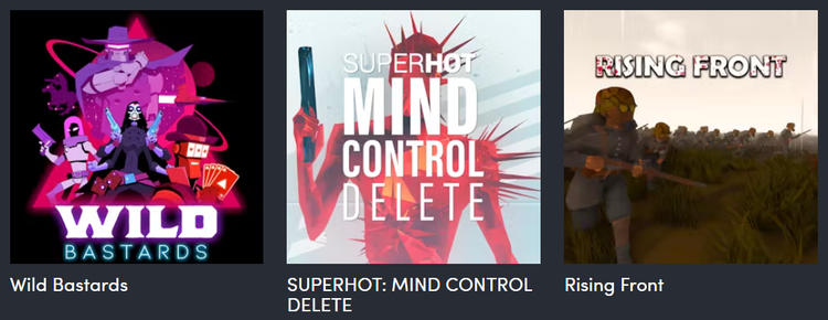 Την ίδια στιγμή, δίνοντας τουλάχιστον 10,63€ αγοράζουμε επιπλέον το “Wild Bastards”, το “SUPERHOT: MIND CONTROL DELETE”, και το “Rising Front”.