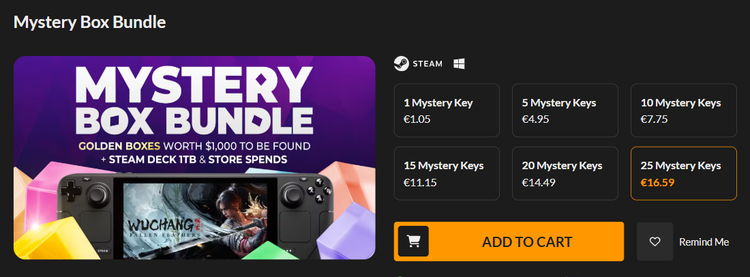 Να σημειώσουμε ότι τα κλειδιά που αγοράζουμε με το Mystery Box Bundle είναι κρυφά. Μαθαίνουμε τι αγοράσαμε μόνο όταν η ιστοσελίδα προσθέσει τα κλειδιά στον λογαριασμό μας.