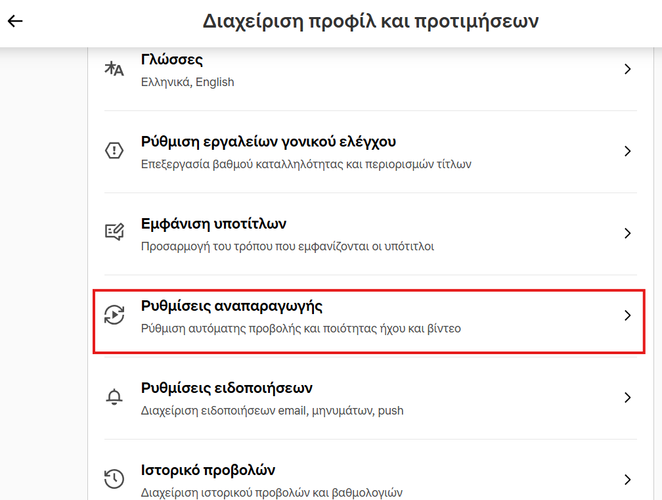 Μετά, κάνουμε κλικ στο “Ρυθμίσεις αναπαραγωγής”.