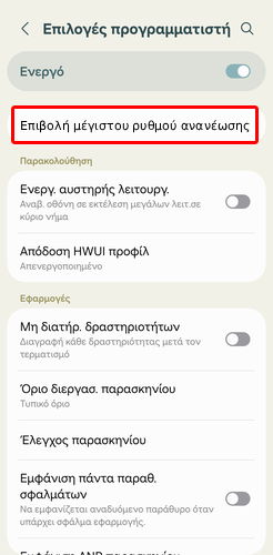 Πώς αναγκάζω το Android να χρησιμοποιεί τον μέγιστο ρυθμό ανανέωσης της οθόνης