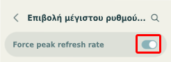 Στη συνέχεια, ενεργοποιούμε τον διακόπτη δίπλα στο “Force peak refresh rate” για να αναγκάσουμε την οθόνη να χρησιμοποιεί την υψηλότερη διαθέσιμη συχνότητα.