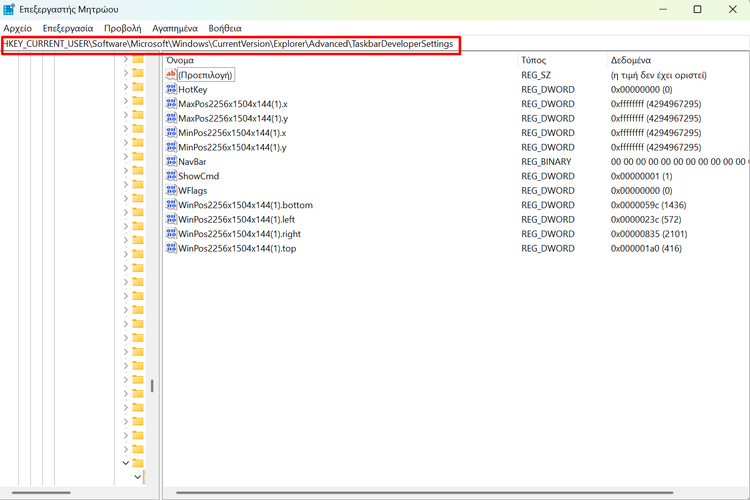 HKEY_CURRENT_USER\Software\Microsoft\Windows\CurrentVersion\Explorer\Advanced\TaskbarDeveloperSettings