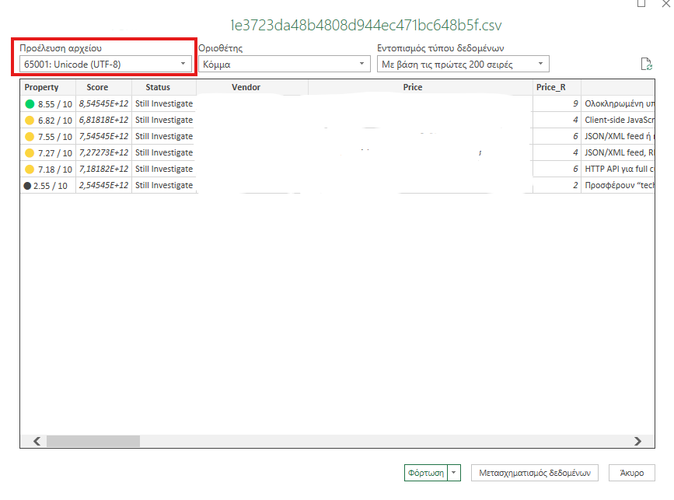 Τέλος, αφού βεβαιωθούμε ότι το κείμενο φαίνεται σωστά στην προεπισκόπηση, πατάμε “Φόρτωση”, για να εισάγουμε τα δεδομένα στο αρχείο.