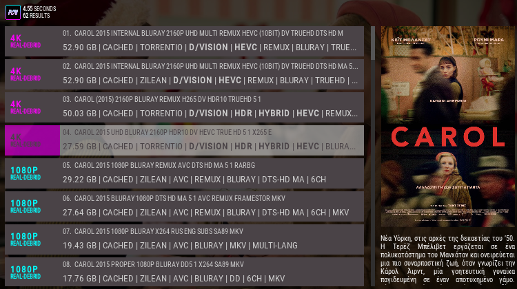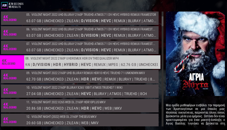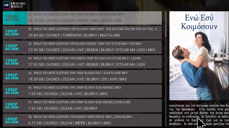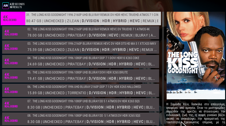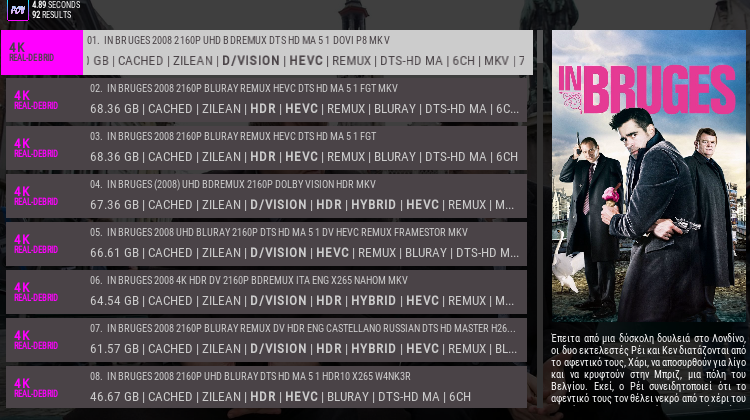 Το Kodi σε συνδυασμό με Real Debrid, καθώς και το Stremio, αναπαράγουν την ταινία σε πολύ καλή ποιότητα, και με συγχρονισμένους ελληνικούς υπότιτλους.
