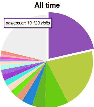 Αφήνοντας το δείκτη ακίνητο πάνω σε οποιοδήποτε τμήμα της πίτας, θα εμφανιστούν οι ακριβείς μας επισκέψεις για το αντίστοιχο διάστημα.