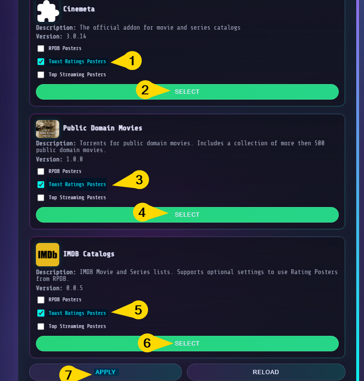 Έτσι, αυτό που πρέπει να κάνουμε προσεκτικά τώρα είναι να επιλέξουμε διαδοχικά το Toast Ratings Posters σε κάθε κατάλογο, και να πατήσουμε διαδοχικά στο Select, όπως παρατηρούμε στο κάτωθι στιγμιότυπο.