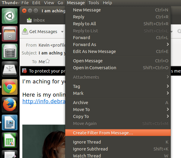Ανοίγουμε λοιπόν ένα από τα μηνύματά τους, και επιλέγουμε «Δημιουργία κανόνα» από το μενού.