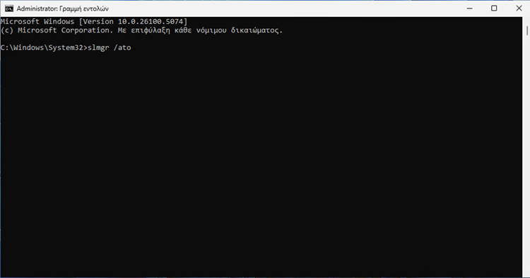Τέλος, για να ενεργοποιήσουμε την άδεια χρήσης των Windows 11, πληκτρολογούμε ή επικολλούμε την εντολή slmgr /ato
