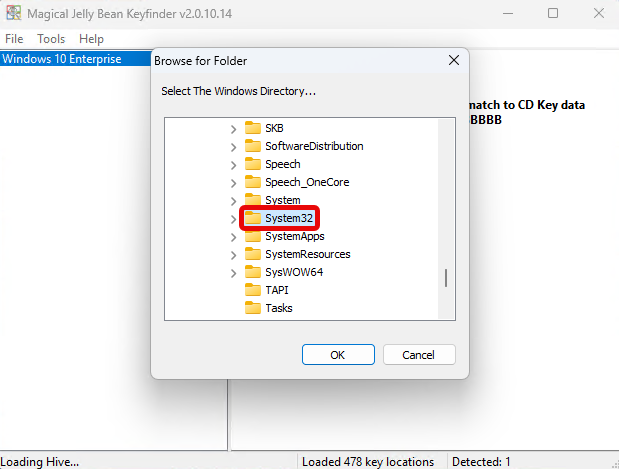 Από εκεί, με τη βοήθεια της δωρεάν εφαρμογής KeyFinder, μπορούμε να εντοπίσουμε το κλειδί προϊόντος της παλιάς εγκατάστασης. Την εφαρμογή μπορούμε να την κατεβάσουμε από εδώ, είναι portable και δεν απαιτεί εγκατάσταση.