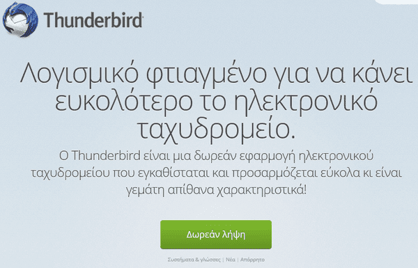 Για να εγκαταστήσουμε το Thunderbird, θα βρούμε την τελευταία του έκδοση στη διεύθυνση https://www.mozilla.org/thunderbird/