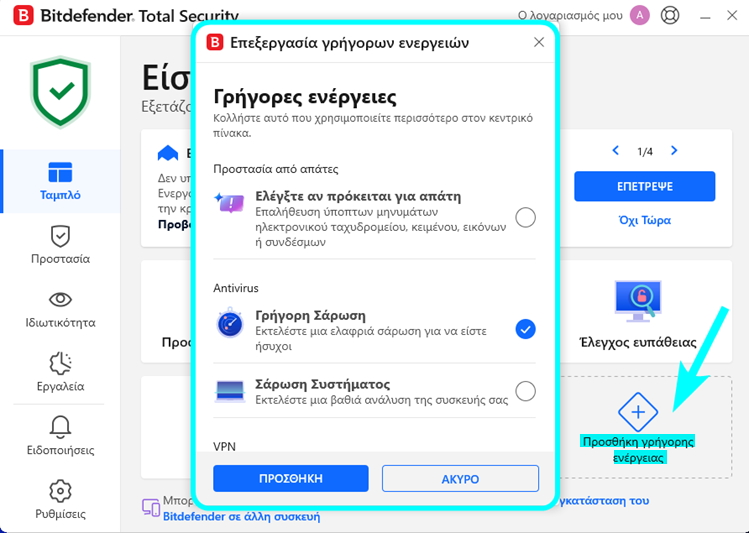 Καθώς το Bitdefender ελέγχει όλα τα αρχεία που κατεβάζουμε και τρέχουμε, η γρήγορη σάρωση είναι αρκετή στη συντριπτική πλειοψηφία των περιπτώσεων.
