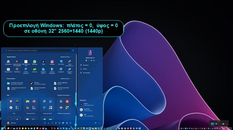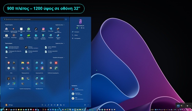 Αρχικά, πρέπει να θυμόμαστε πως το κλασικό μενού Έναρξης έχει πλάτος 642 και ύψος 726 pixels. Το νέο, ανασχεδιασμένο μενού Start Menu των Windows 11, έχει πλάτος 834 και το ύψος εξαρτάται από το μέγεθος της οθόνης.