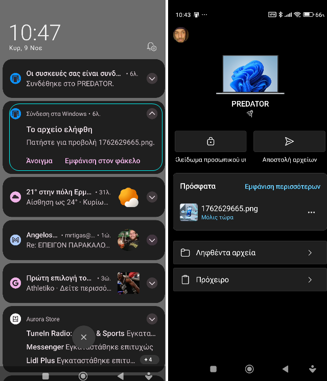 Όλα τα αρχεία που μεταφέρουμε από το PC στο Android, τα εντοπίζουμε στο σχετικό φάκελο των λήψεων του κινητού μας. Σε αυτό το σημείο, καλό είναι στην ειδοποίηση του κινητού να επιλέξουμε την εγγενή εφαρμογή του Phone Link στο Android για να εντοπίσουμε τα αρχεία που έχουμε μεταφέρει.